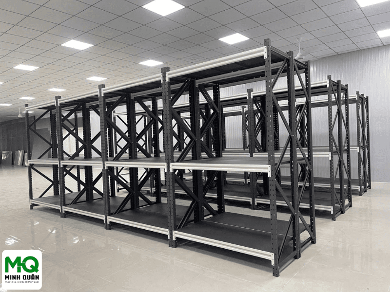 Minh Quân mang đến giải pháp kệ trung tải tối ưu với khả năng tư vấn thiết kế phù hợp thực tế kho hàng. Hệ thống kệ có tải trọng đa dạng từ 200kg đến 700kg mỗi tầng, dễ dàng điều chỉnh số tầng và kích thước để đáp ứng linh hoạt nhu cầu lưu trữ khác nhau. Sử dụng vật liệu thép sơn tĩnh điện chất lượng cao, sản phẩm không chỉ bền bỉ mà còn đảm bảo an toàn tuyệt đối trong quá trình vận hành lâu dài.